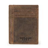 Karl ist das minimalistische Wallet für Alltag und Reisen – schlank, funktional und bewusst reduziert im Design. Das hochwertige Vintage-Leder entwickelt mit der Zeit eine individuelle Patina und macht jedes Exemplar zu einem Unikat.